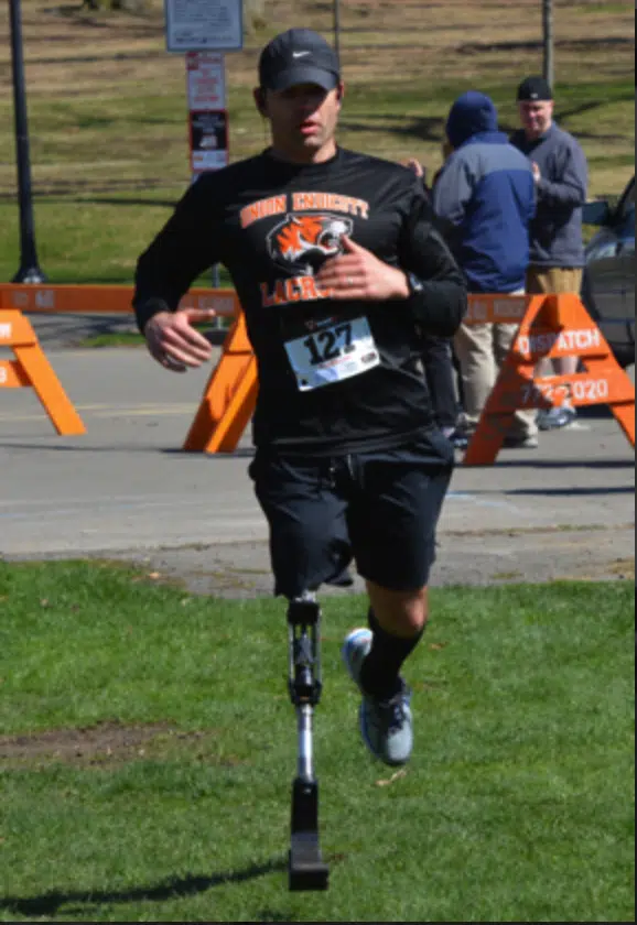 Today, I am 38 years old, a school social worker and am married to my high school sweetheart. I continue to coach lacrosse and swim and participate in events such as the Tough Mudder. Being a disabled athlete allows me to push my personal limits and show my two daughters what their dad, a cancer survivor and amputee, can do.